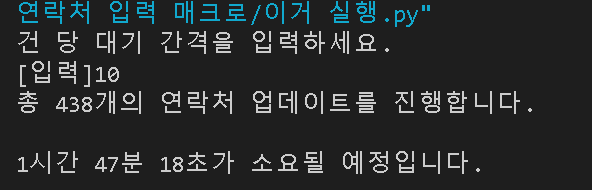 sleepS=int(input("건 당 대기 간격을 입력하세요.\n[입력]"))