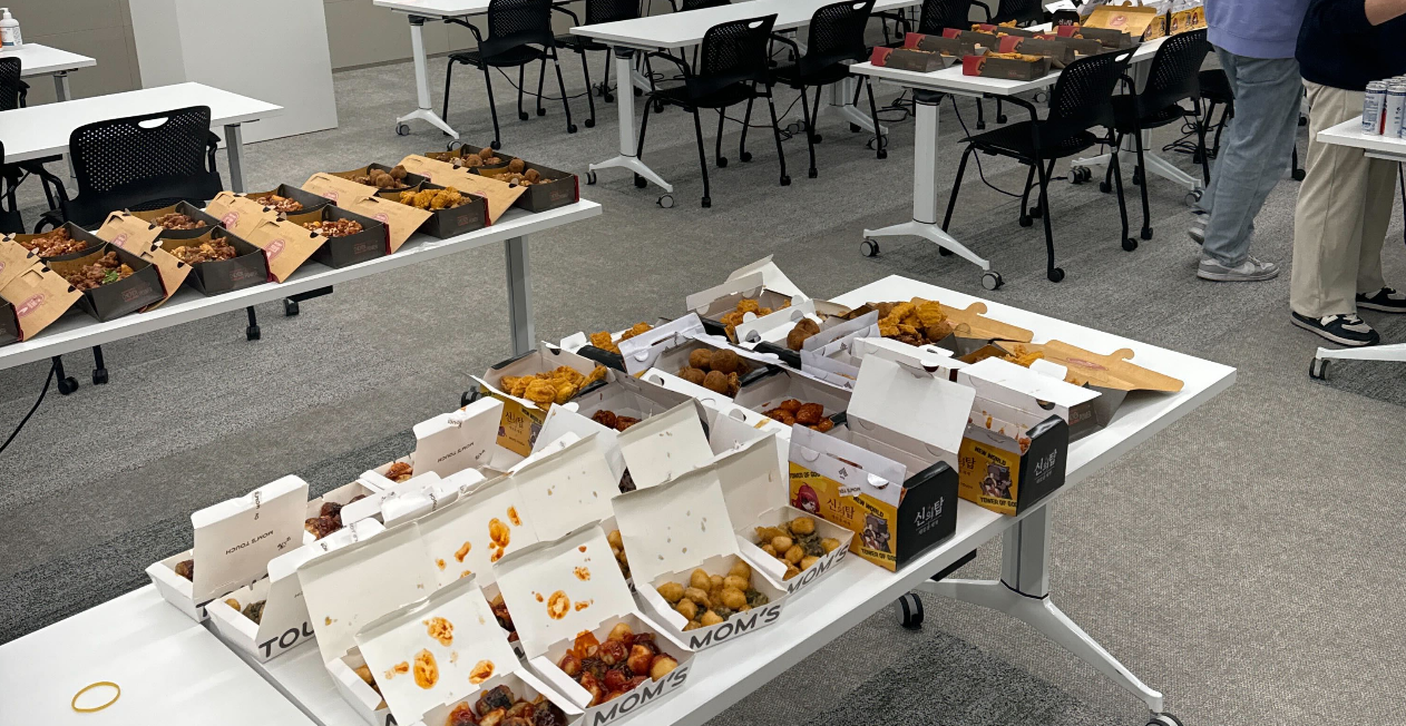 대회장에는 치킨이 종류별로 준비되어 있었다. 치킨에 떡, 치킨무까지 야무지게 가져와서 먹었다. 긴장했던 건 어디 가고 치킨 먹방에만 집중했다. 이 날 인상깊었던 기억 중 하나가 치킨인 것 같다. 특히 마늘치킨이 맛있었다.